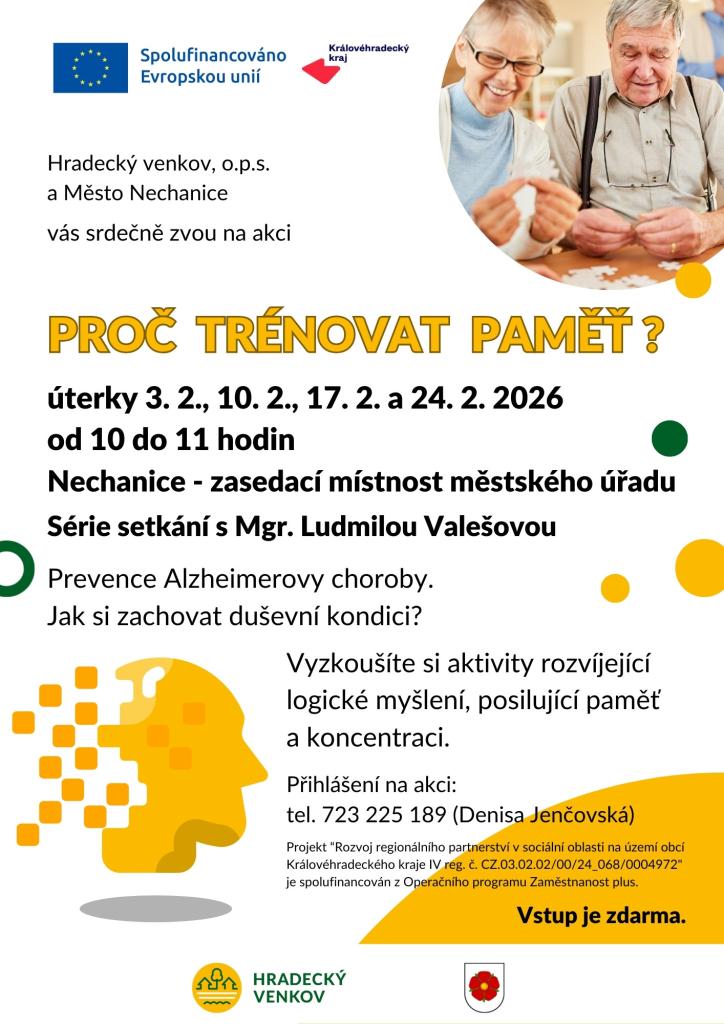 Hradecký venkov a město Nechanice Vás zvou na kurz TRÉNOVÁNÍ PAMĚTI. Více info v letáku.